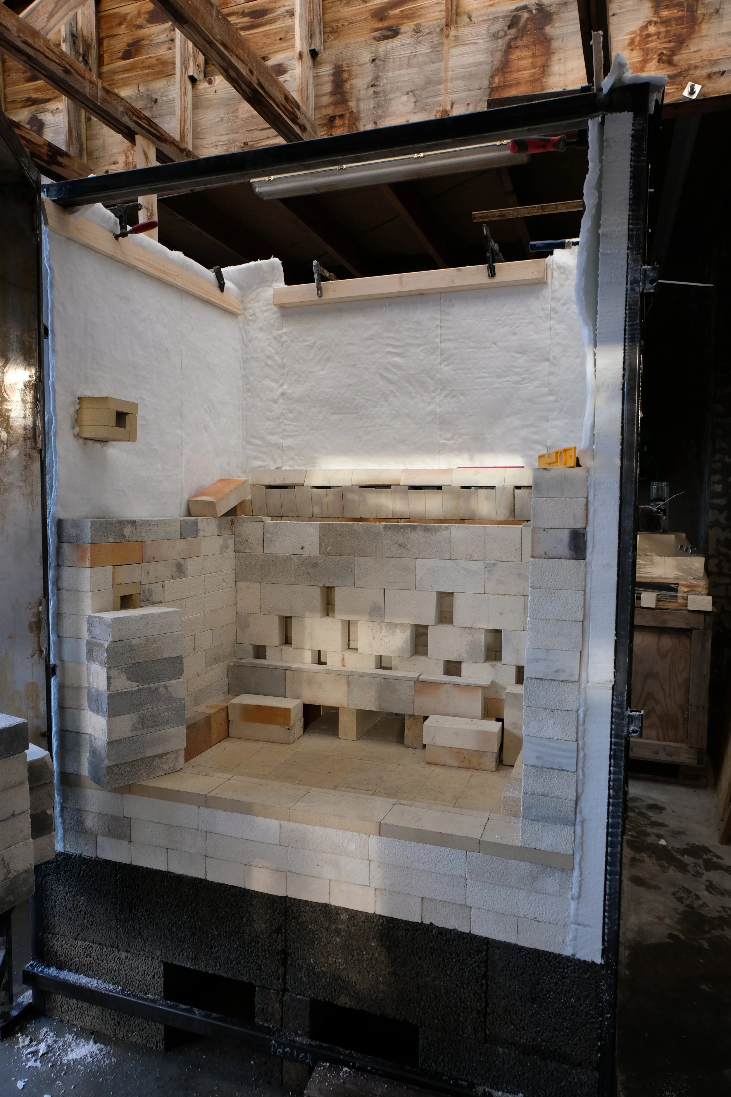 For å gjøre ovnen så energieffektiv som mulig, er den svært godt isolert. Vi har brukt en kombinasjon av porøs isolasjonsstein, keramisk fiber og spesialplater som reduserer varmetap og holder energibruken på et minimum – et viktig grep for å gjøre vedfyrt keramikk mer effektivt og bærekraftig.